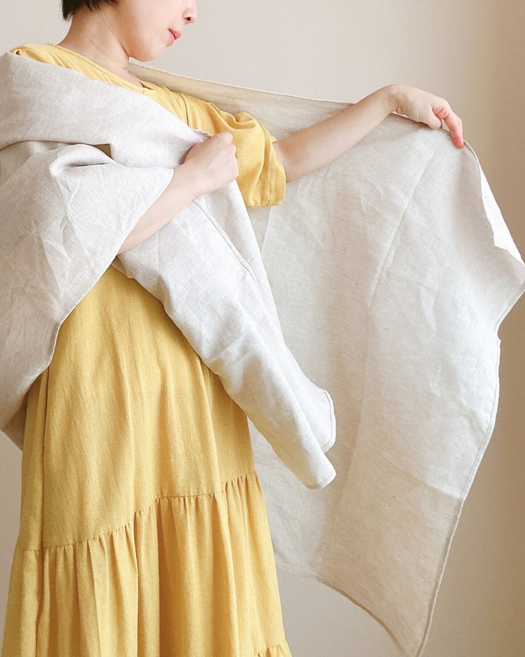 この大判ストールを鞄に忍ばせて、いつでも、どこでも、心地よく過ごしてくださいね。