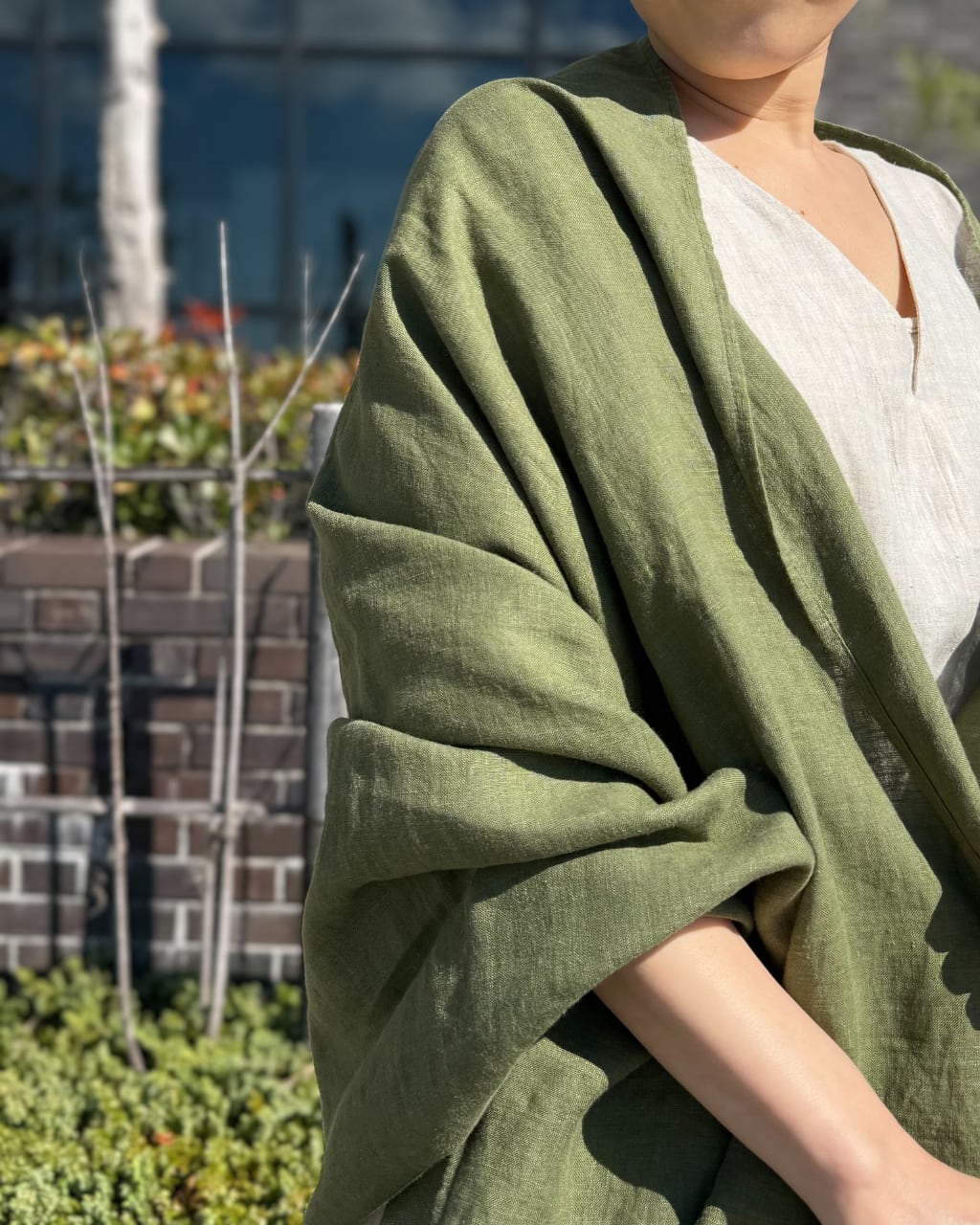 肌にふれた瞬間、ふわっと空気をまとうようなやさしさ。天然のヘンプで丁寧に織り上げた、大判サイズのストールです。たっぷりとしたサイズ感で、首元に巻くだけでなく、肩掛けや、ひざ掛け、ショールとしても重宝し、季節を問わず、幅広いシーンで“持っててよかった”と思える1枚です。