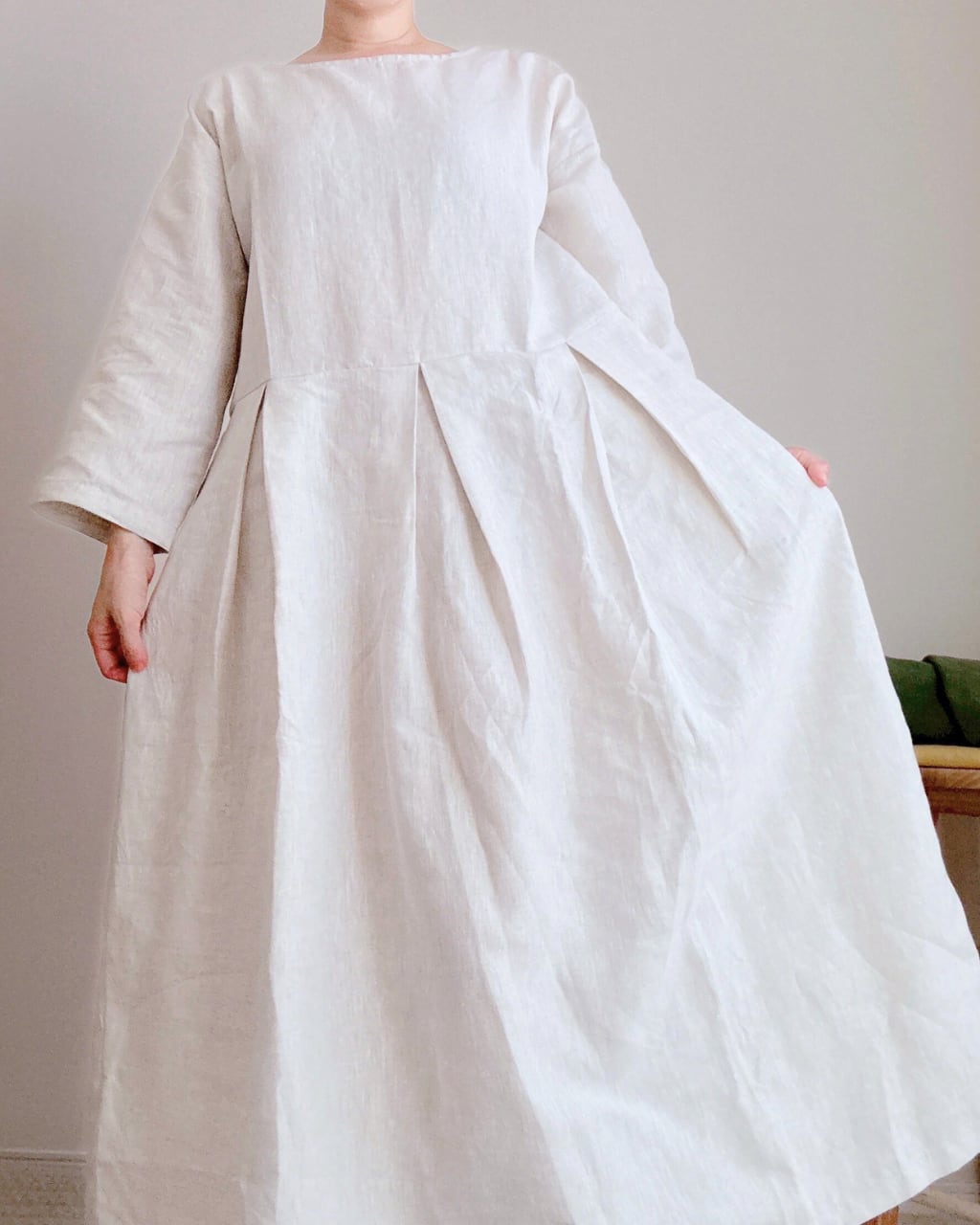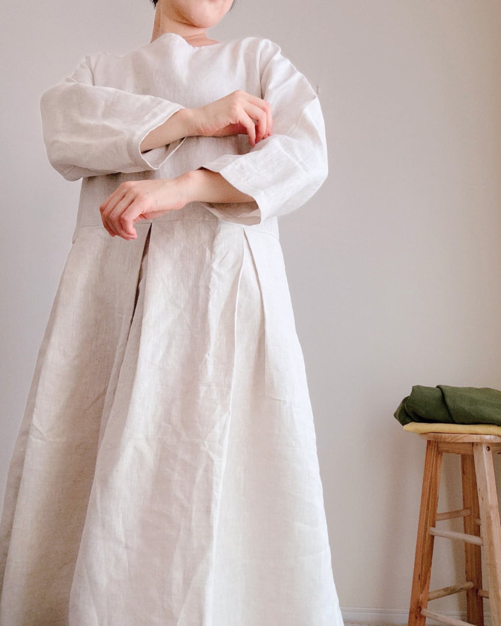 ヘンプのやさしい肌触りと軽やかさが魅力のふんわりワンピースです。肩落ちデザイン&ゆったりシルエットで、リラックス感と大人の可愛らしさを楽しめます。