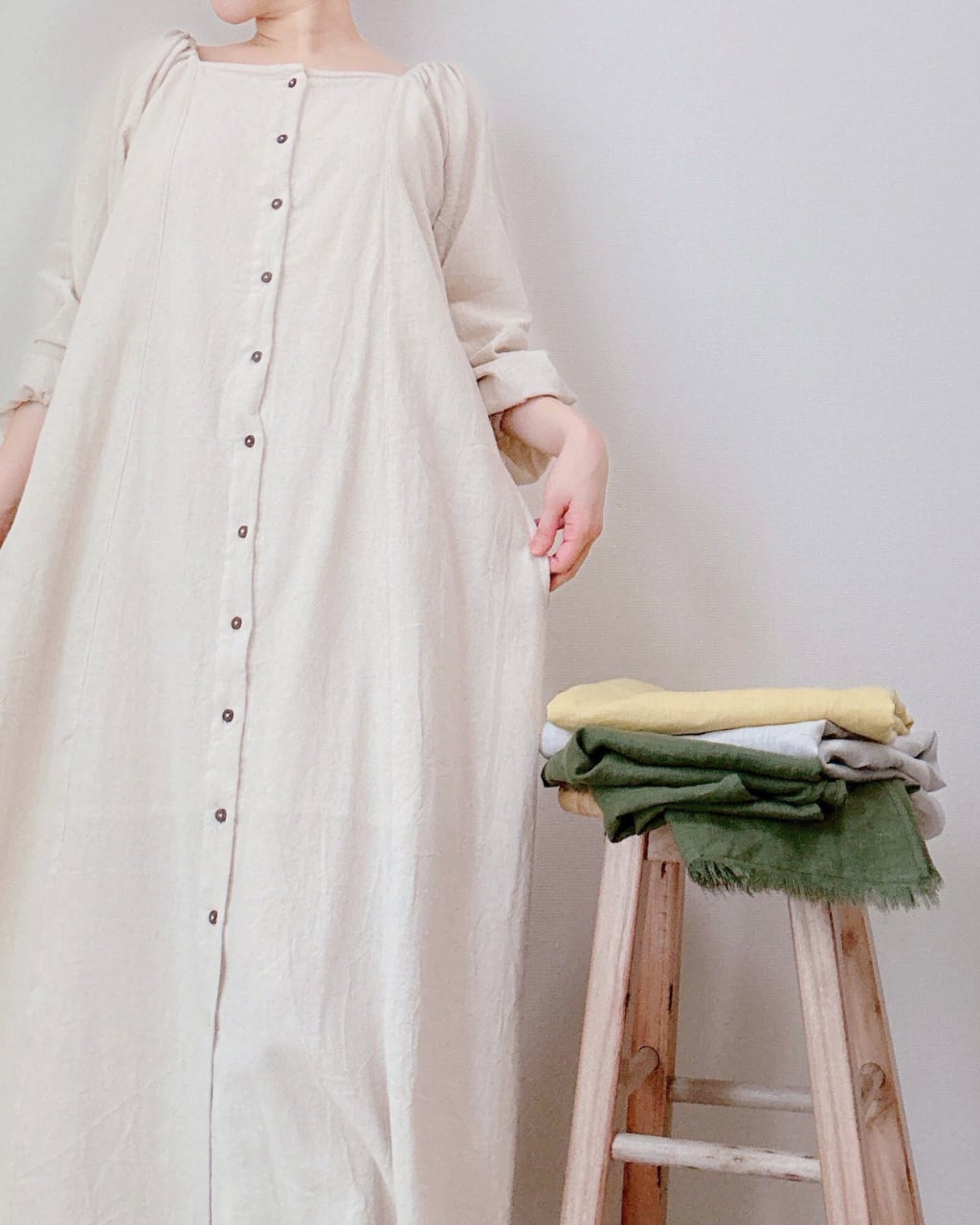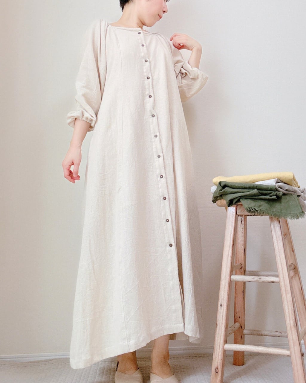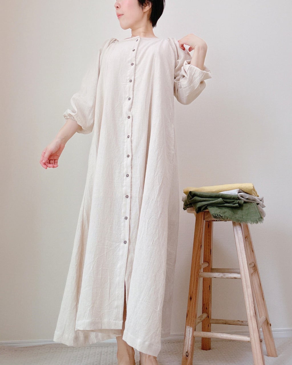 天然素材ヘンプで仕立てた、空気のように軽やかなロングワンピース。着るたびに体をゆるめ、自然と調和する心地よさを感じられます。