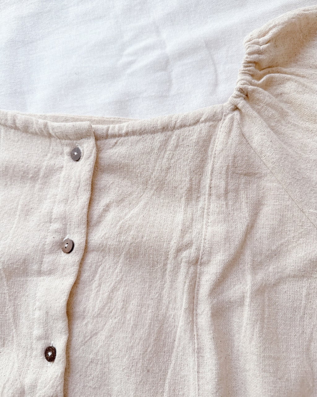 フロントに並んだココナッツのボタンがナチュラルで可愛い。