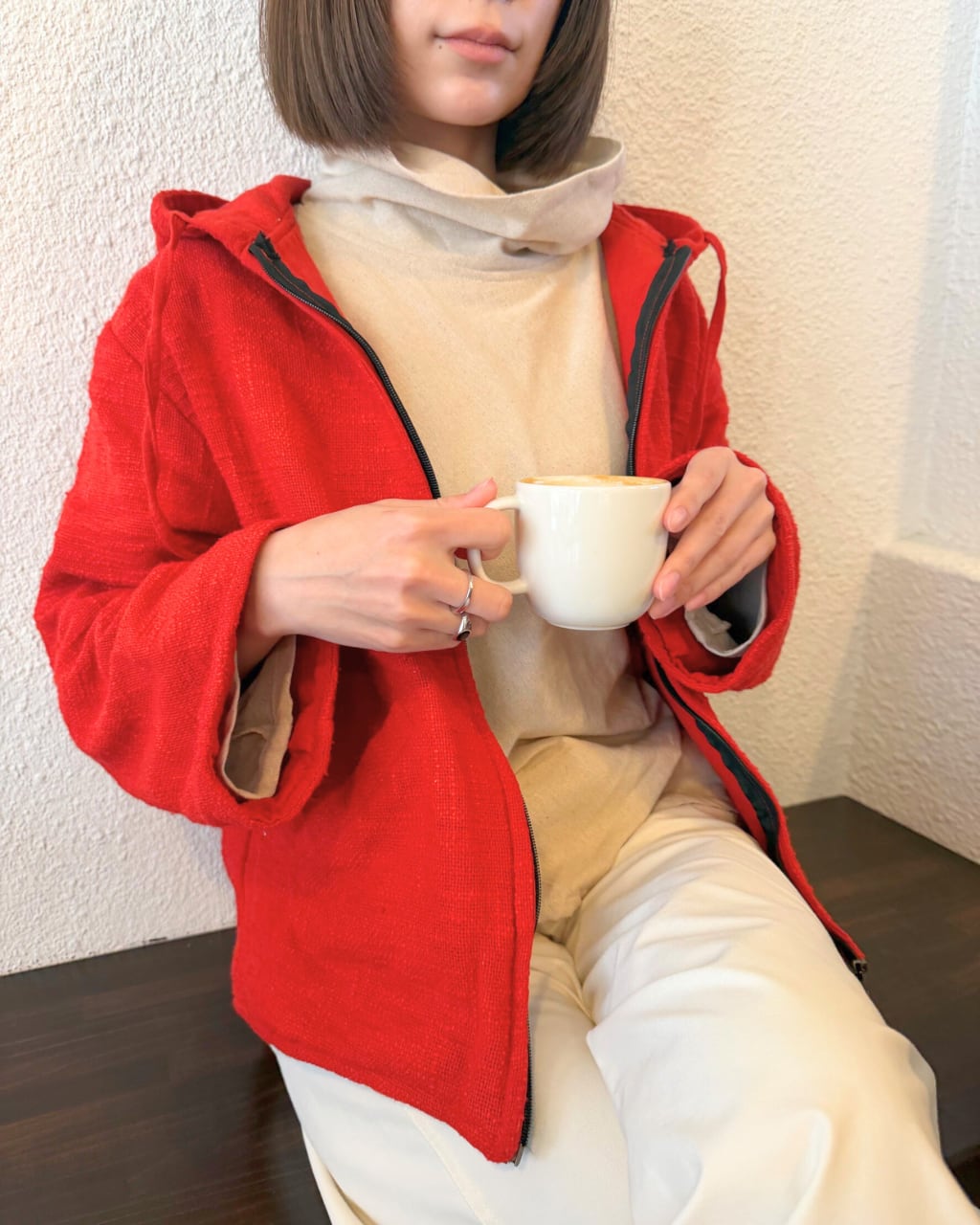 ジュートのナチュラルな質感と、ヘンプの“呼吸する肌触り”が融合した一着です。