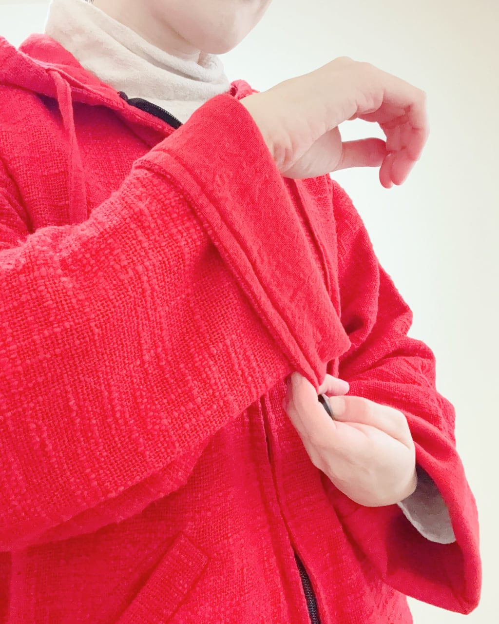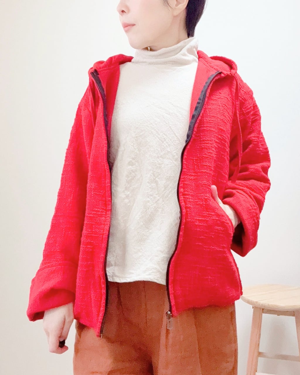 ヘンプ素材は、はじめはしっかりとした触り心地ですが、着用することで徐々に柔らかくなり、心地よいフィット感が得られます。また、通気性や吸湿性に優れており、快適に過ごせます。洗濯を重ねるほどにその風合いが深まり、長くご愛用いただける一着となります。お手入れは洗濯ネットを使用して、形を整えて干すことをお勧めします。