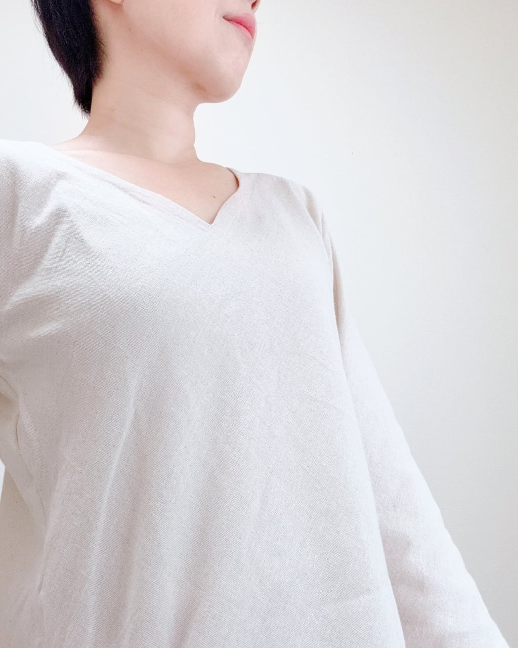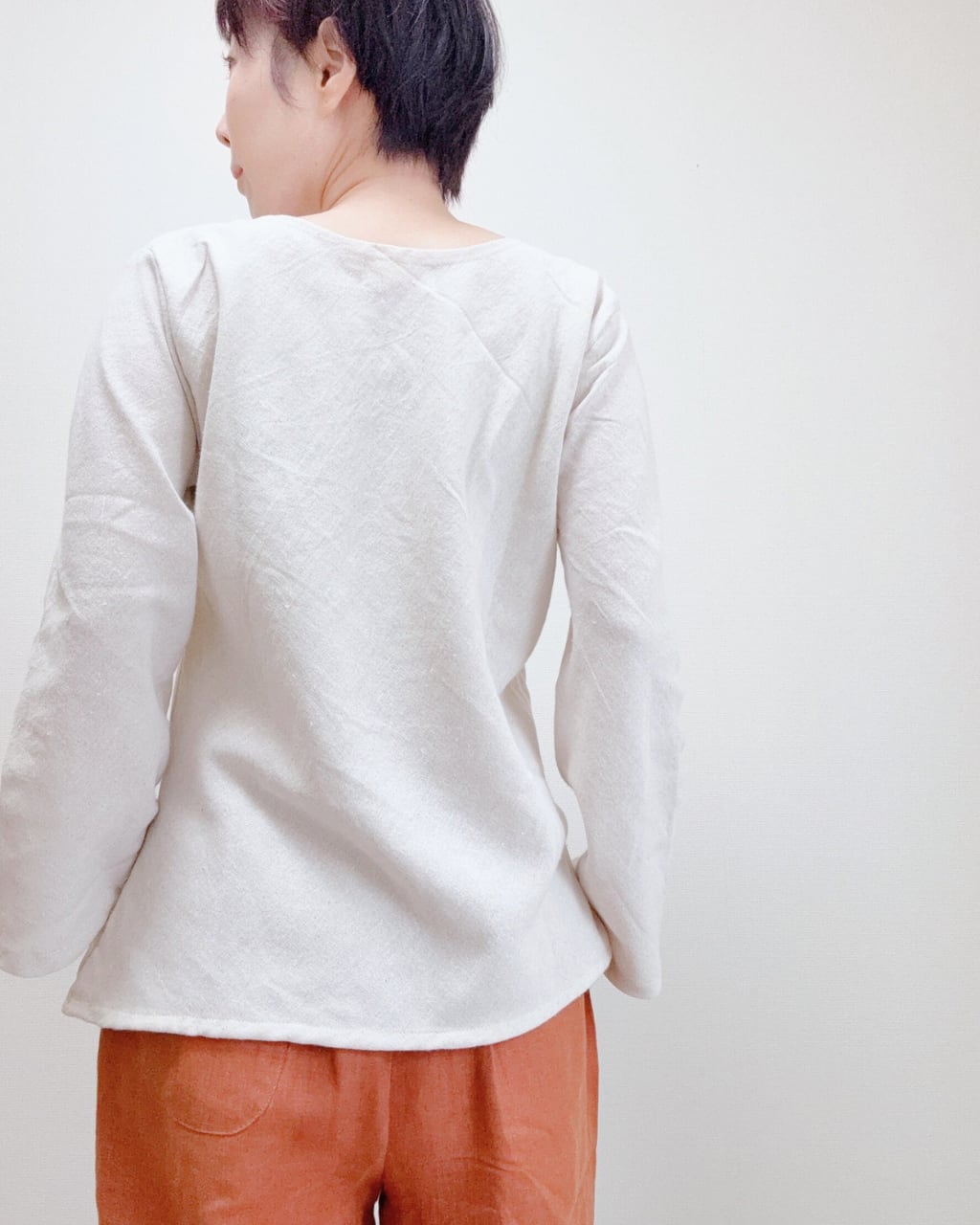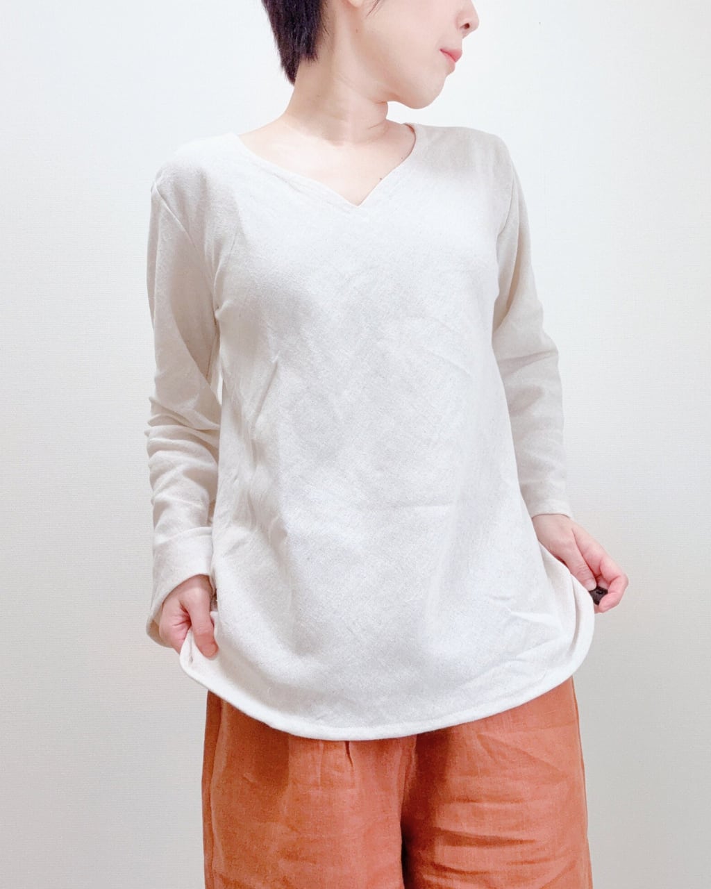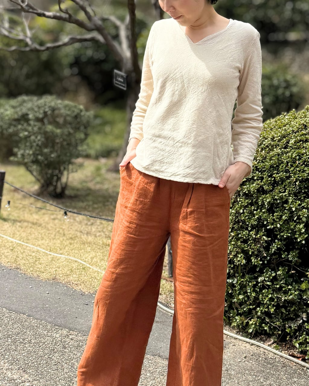 はじめは軽やかなシャリ感があり、着る回数が増えるたびに、洗い重ねるごとに柔らかさが増します。ヘンプ生地によっては生地が縮む場合があります。天然素材100%の素材の為、ネップと言われるプツッと繊維が出ている場合がありますが、そちらも可愛がってあげてくださいね。お洗濯は乾燥機は避けていただくことをおすすめします。