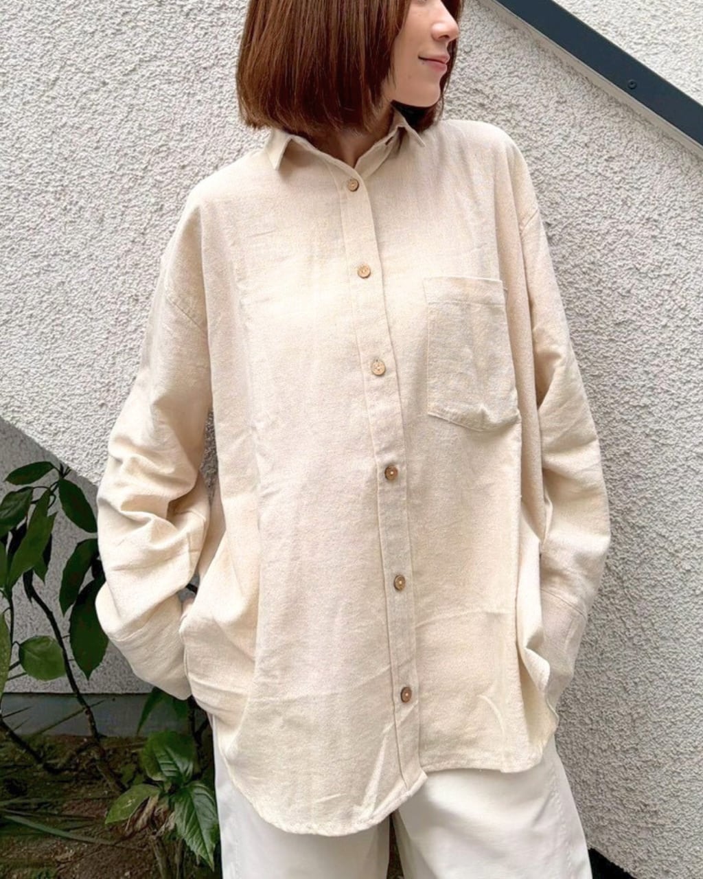 リラックス感がありながら、どこか「ちゃんとして見える」。だからこそ、つい手に取ってしまう。自然体のままで心地よい。そんなシャツを、日常に取り入れてみてはいかがでしょうか。