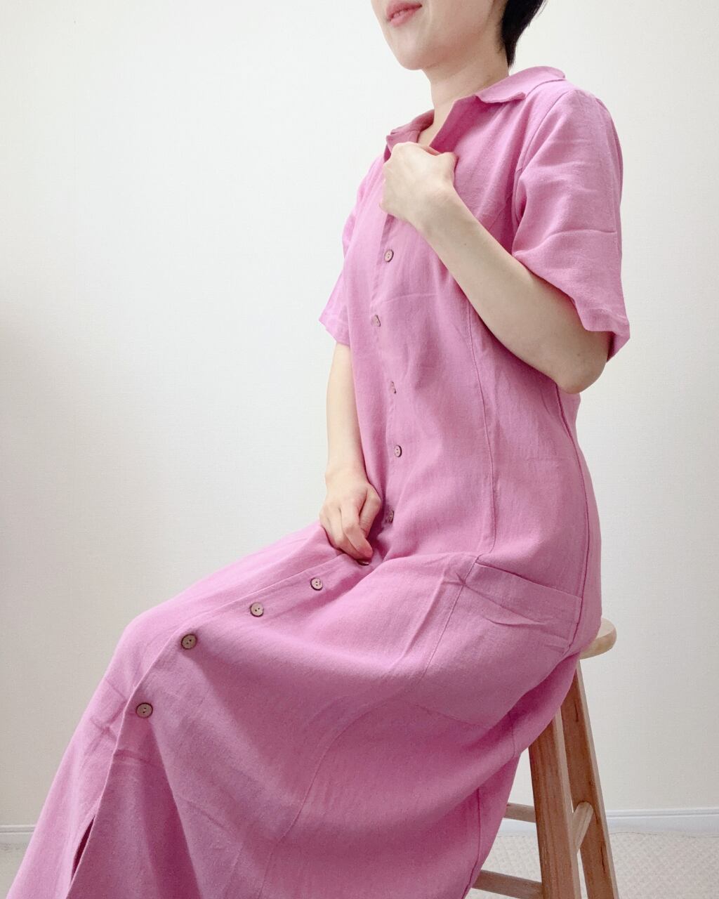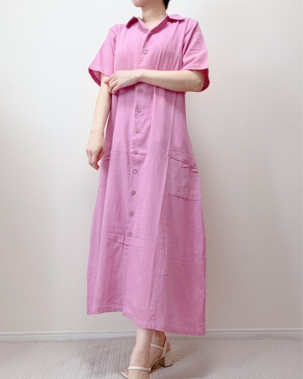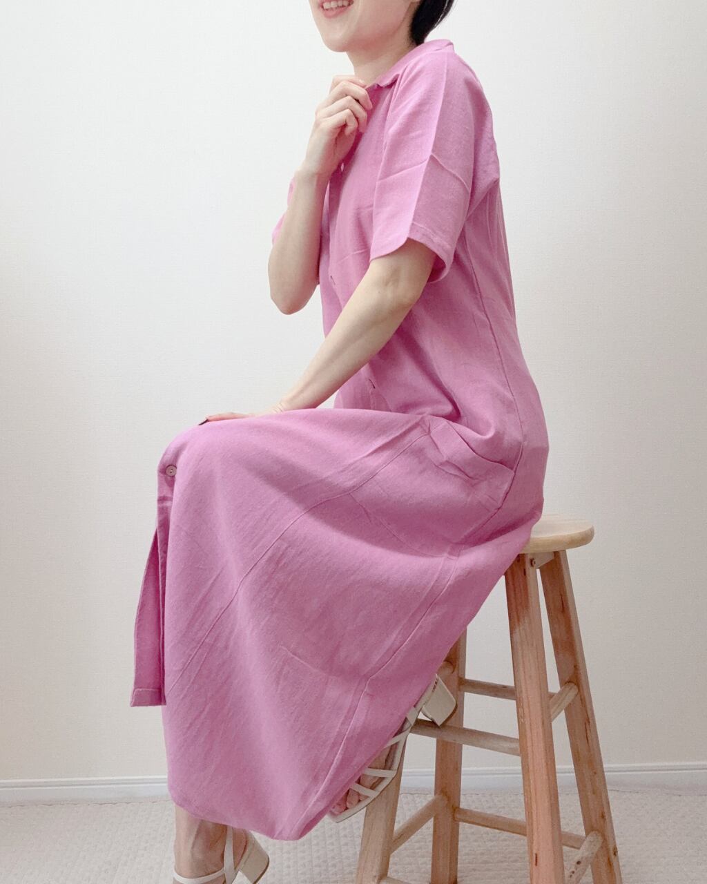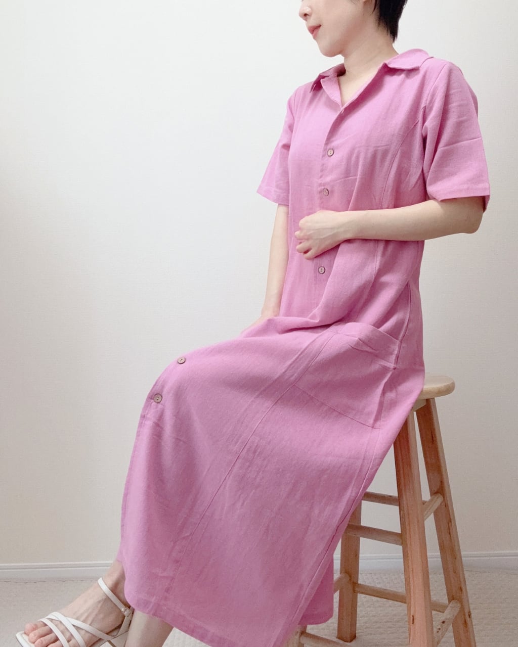 前開き仕様なので、ワンピースとしてはもちろん、羽織としてもお使いいただけます。