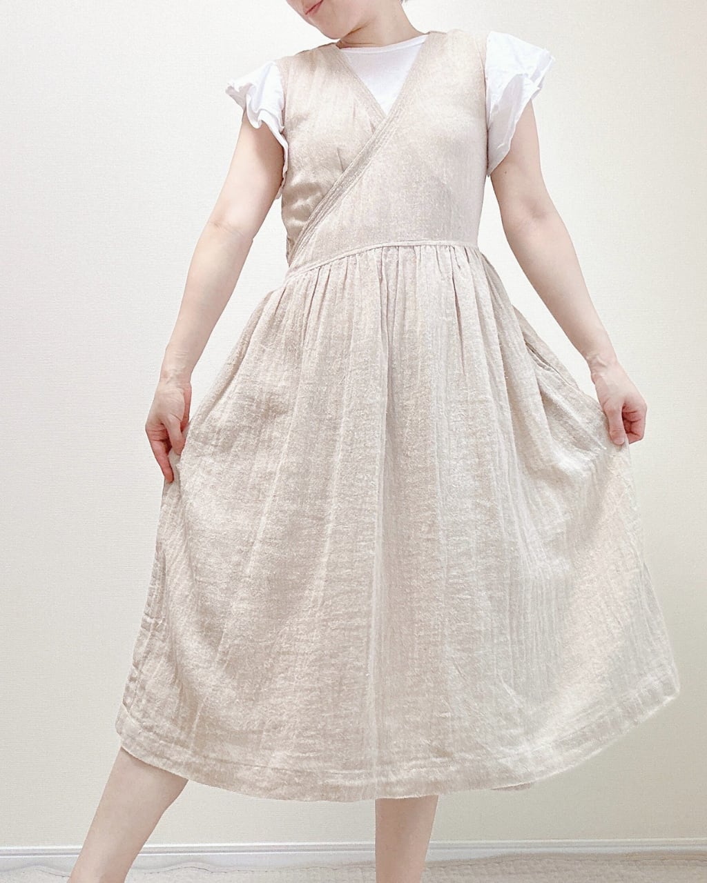 エレガントなシルエットが魅力のカシュクールワンピース。オーガニックヘンプを使用したこのワンピースは、自然な風合いと柔らかさが特徴で、さまざまなシーンで活躍します。デイリーコーデからちょっとしたお出かけまで、気軽におしゃれを楽しめるアイテムです。ヘンプ素材の特性により、通気性、吸湿発熱性が高く、夏はさらりとした着心地、冬は温かさを実現。暑い夏の日、冬の寒い日も快適に過ごせます。
