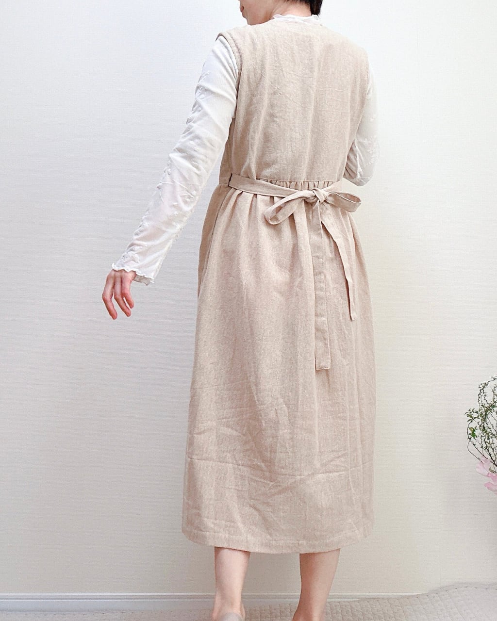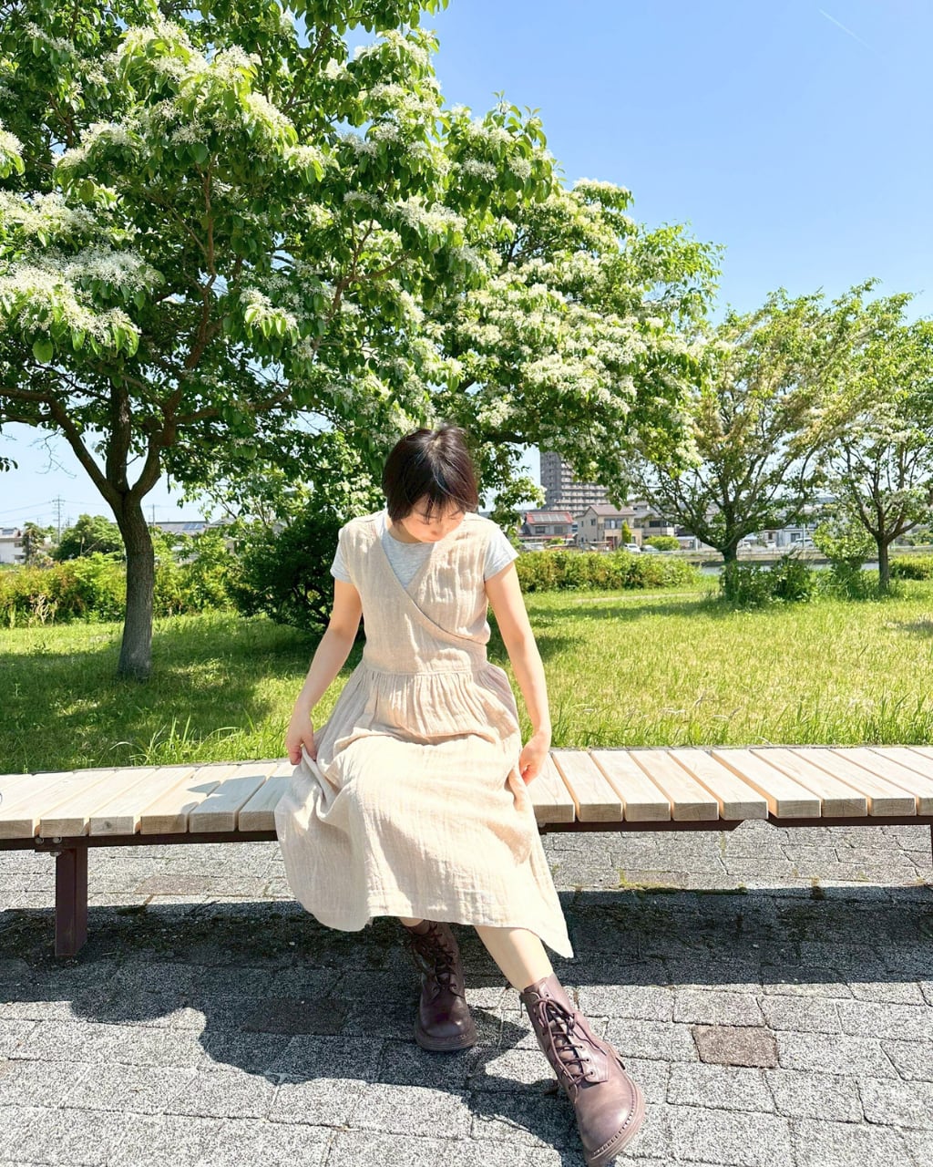 このワンピースは、スニーカーやフラットシューズでカジュアルに、またヒールを合わせることで特別感を演出できるので、多用途に着こなせます。着るたびに風合いが増し、自分だけのスタイルを楽しむことができます。